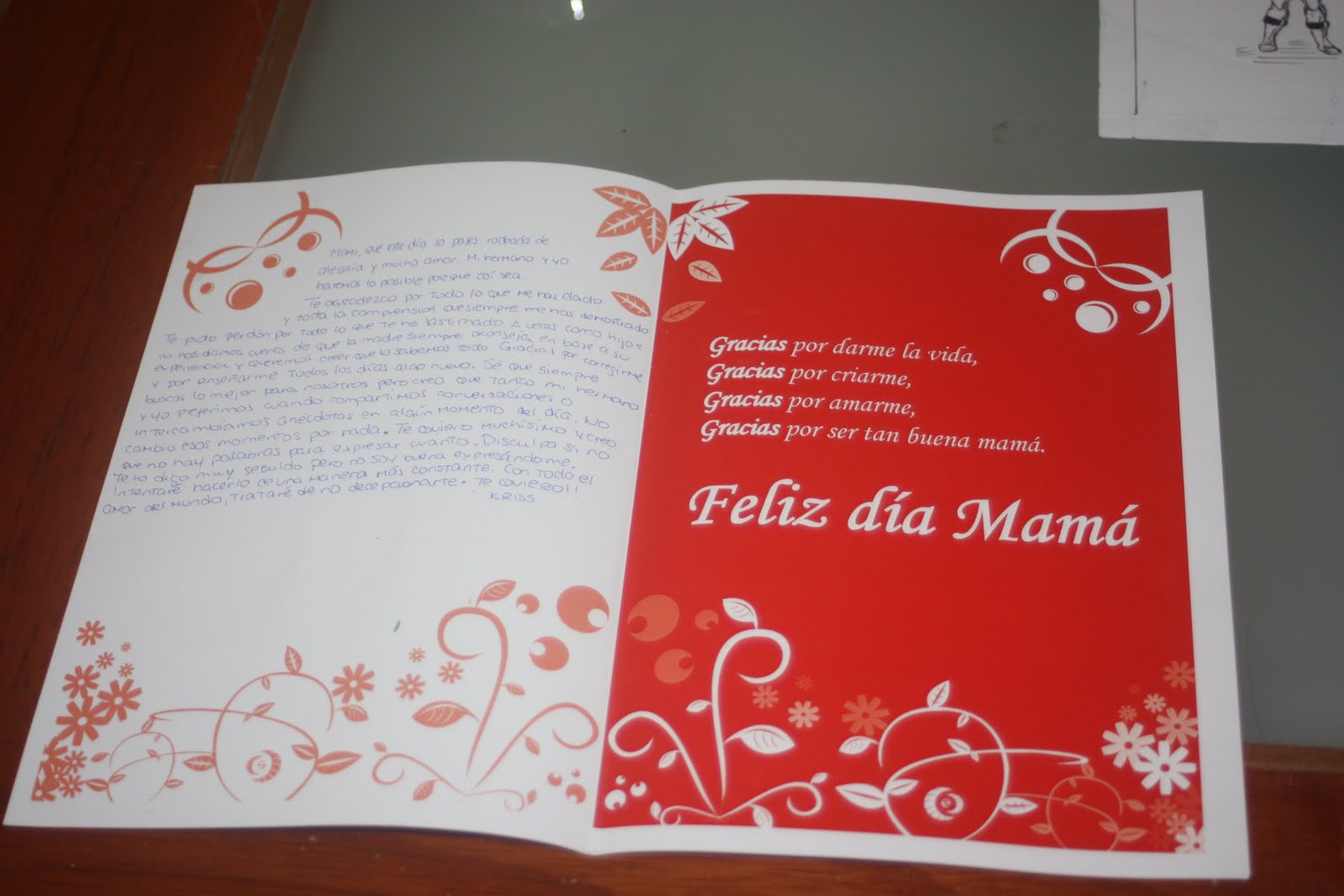 Un parentesis para los trabajos oficiales de diseño, quisiera desear a todas las madres un felíz día, que la pasen bien en su día especial, y claro como diseñador le prepare a mi madre una tarjeta con los conociemientos de aprendidos, una tarjeta y una rosa, una pequeña muestra de mi afecto. Bueno aqui pongo unas fotos del presente. Fin de la trasmisión